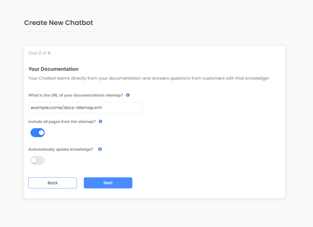 Simply give Chatbot the URL of the sitemap of your website and it will automatically learn everything.